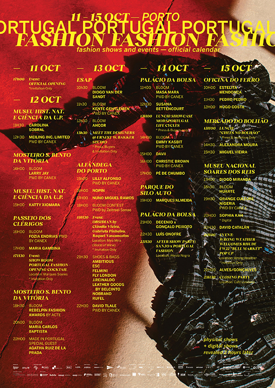 De 11 a 15 de Outubro, mais de 40 desfiles e eventos , espalhados por 10 locais embremáticos do Porto, que receberão as passerelles do Portugal Fashion, aquele que é considerado um dos maiores eventos de moda do País.